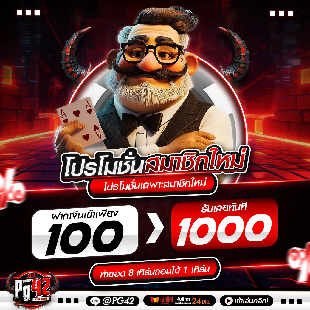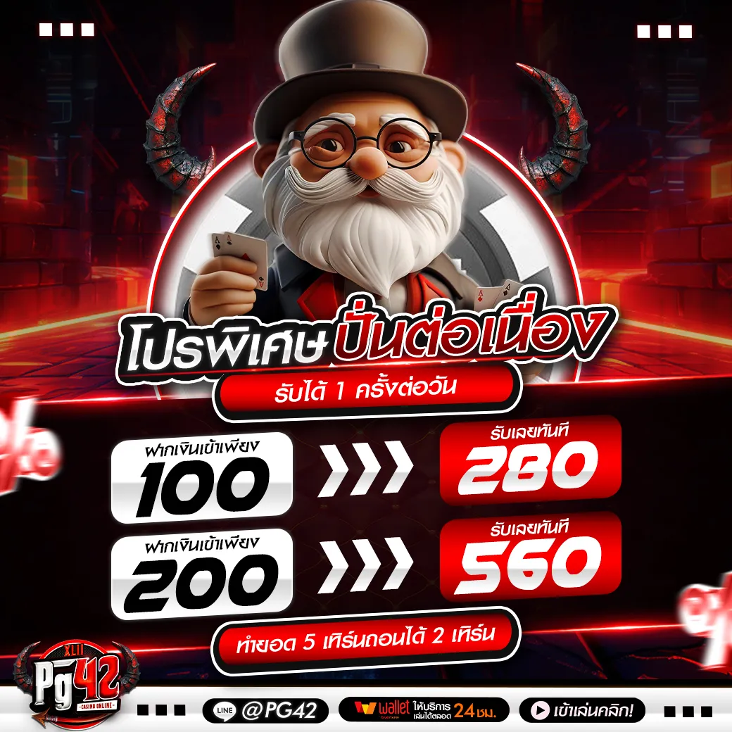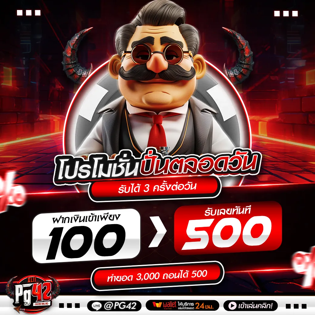 ยินดีต้อนรับสู่ PG42 เว็บไซต์เกมสล็อตออนไลน์ที่มีความนิยมในขณะนี้! PG42VIP.COM เว็บตรง คือ เว็บไซต์ที่มีการพัฒนาเกมสล็อตออนไลน์โดยบริษัท PGZEED ซึ่งเป็นผู้ให้บริการเกมคาสิโนออนไลน์ระดับโลก มีเกมสล็อตที่หลากหลายและน่าสนใจมากมาย สมาชิกสามารถเข้าเล่นได้ง่าย ไม่ต้องทำการโหลดแอปพลิเคชัน สามารถเล่นผ่านเว็บไซต์ได้ทันที พร้อมกับระบบเสียงและกราฟิกที่สมจริง รวมถึงมีการรองรับการเล่นผ่านมือถือทุกระบบปฏิบัติการเช่น IOS และ Android เพื่อความสะดวกสบายในการเล่น นอกจากนี้ ยังมีโปรโมชั่นและโบนัสต่างๆ ที่สำหรับสมาชิกที่สมัครใหม่ และสมาชิกเก่าที่เล่นต่อเนื่อง มากมายที่จะช่วยเพิ่มโอกาสในการชนะรางวัลใหญ่ๆ ในเกมสล็อต PG SLOT อย่างมากมาย