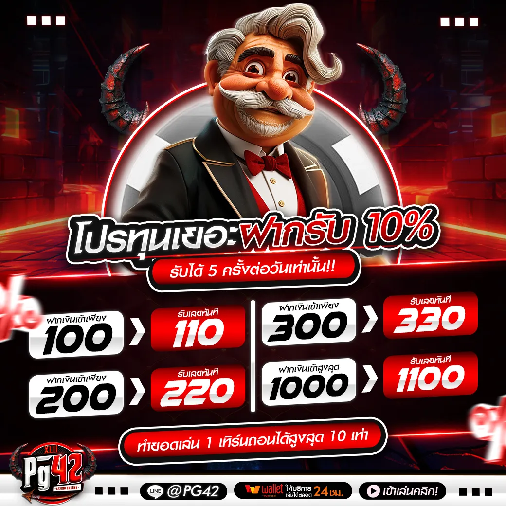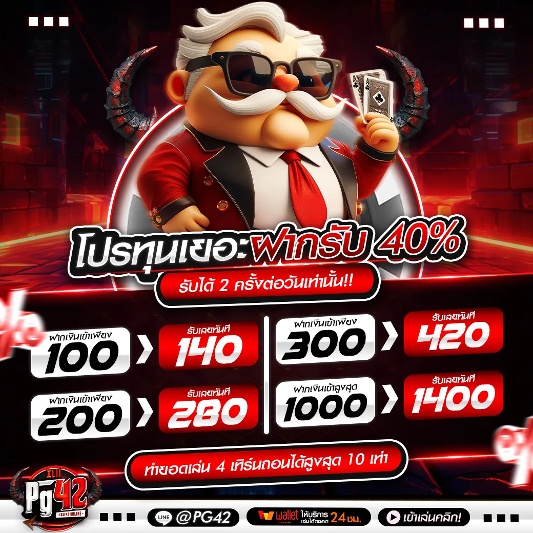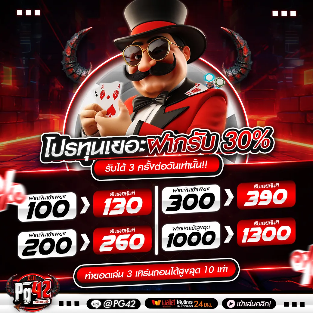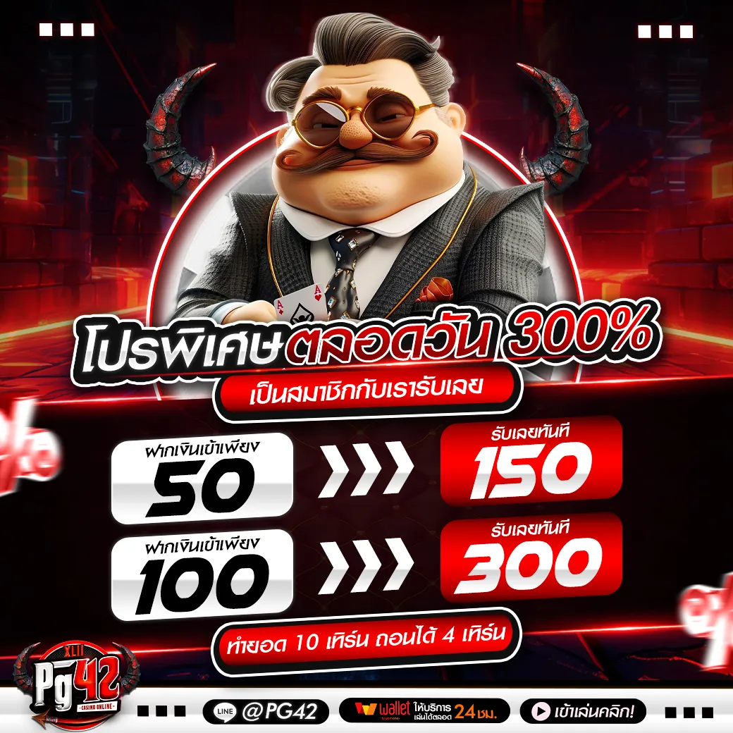 ยินดีต้อนรับสู่ PG42 เว็บไซต์เกมสล็อตออนไลน์ที่มีความนิยมในขณะนี้! PG42VIP.COM เว็บตรง คือ เว็บไซต์ที่มีการพัฒนาเกมสล็อตออนไลน์โดยบริษัท PGZEED ซึ่งเป็นผู้ให้บริการเกมคาสิโนออนไลน์ระดับโลก มีเกมสล็อตที่หลากหลายและน่าสนใจมากมาย สมาชิกสามารถเข้าเล่นได้ง่าย ไม่ต้องทำการโหลดแอปพลิเคชัน สามารถเล่นผ่านเว็บไซต์ได้ทันที พร้อมกับระบบเสียงและกราฟิกที่สมจริง รวมถึงมีการรองรับการเล่นผ่านมือถือทุกระบบปฏิบัติการเช่น IOS และ Android เพื่อความสะดวกสบายในการเล่น นอกจากนี้ ยังมีโปรโมชั่นและโบนัสต่างๆ ที่สำหรับสมาชิกที่สมัครใหม่ และสมาชิกเก่าที่เล่นต่อเนื่อง มากมายที่จะช่วยเพิ่มโอกาสในการชนะรางวัลใหญ่ๆ ในเกมสล็อต PG SLOT อย่างมากมาย